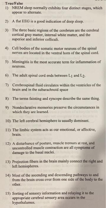 Solved True False 1 Nrem Sleep Normally Exhibits Four Chegg Com